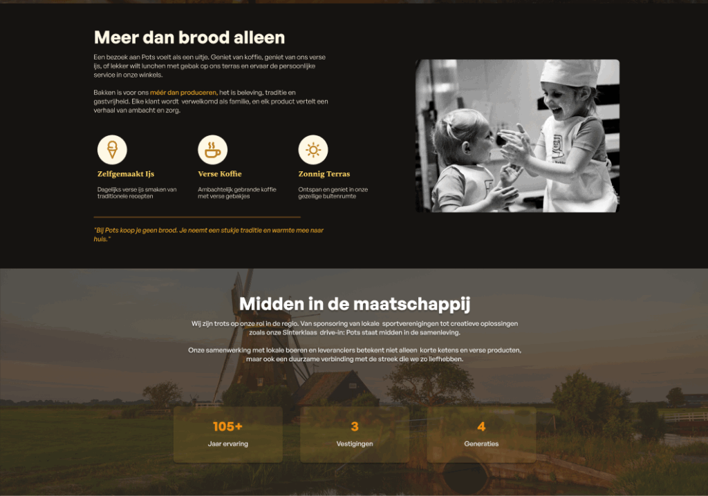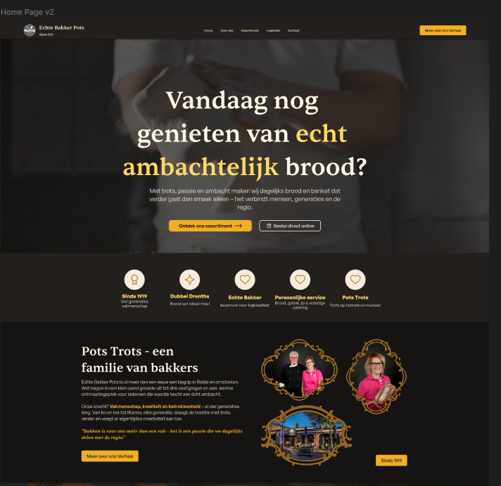 Hierbij was ik verantwoordelijk voor de huisstijl, merkstrategie, visuele identiteit en de volledige website-redesign. Het doel: Pots positioneren als “de ambachtelijke bakker van vandaag”, vertrouwd, ambachtelijk en eigentijds.